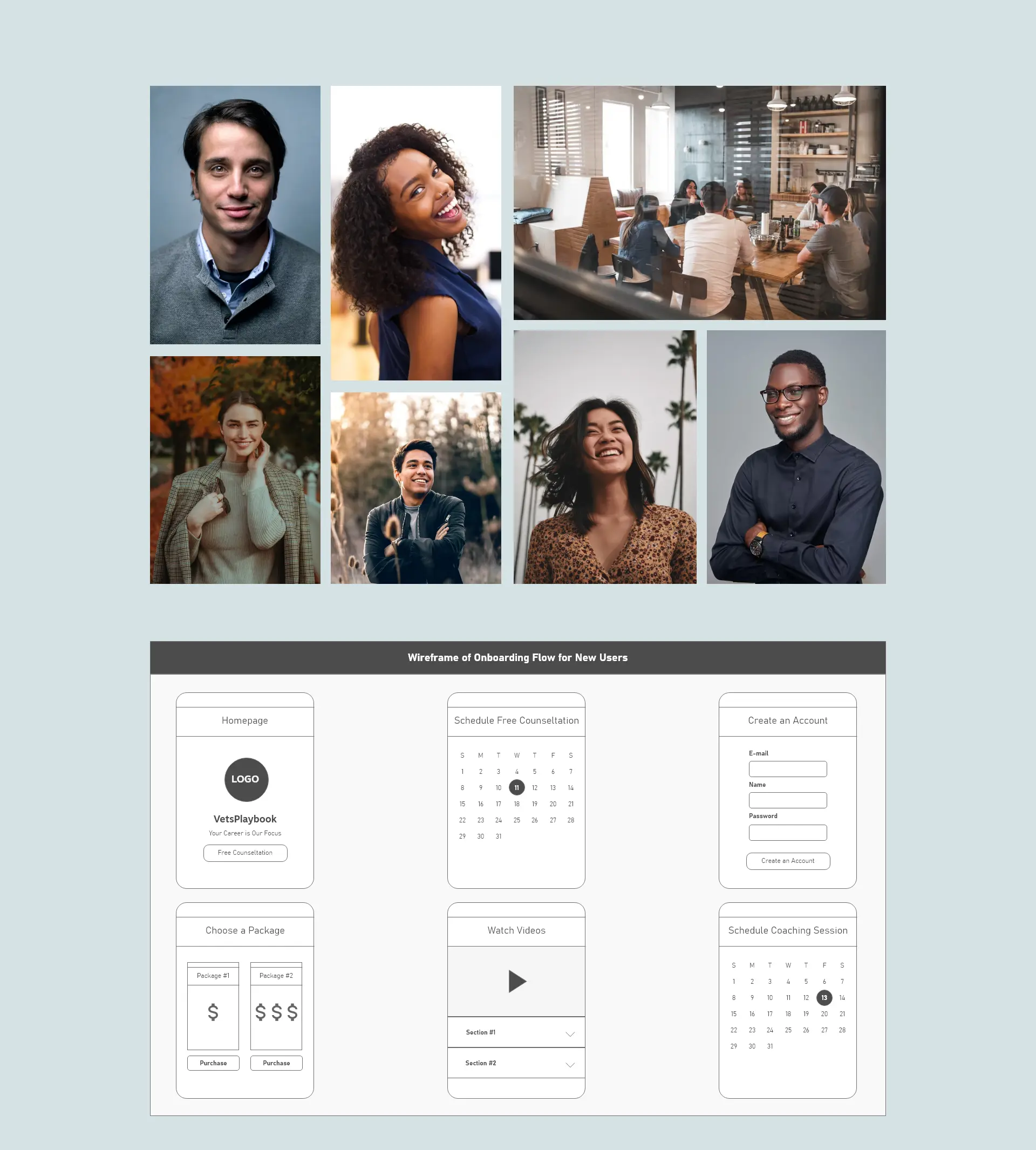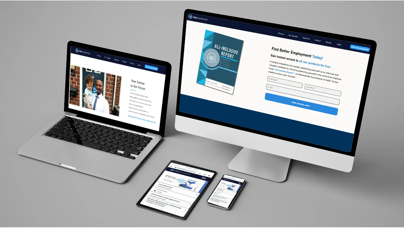 Our approach towards the style of our web app was heavily influenced by the data we collected from customers. While many veteran specific businesses use military imagery to attract veterans, our data showed that veterans tended to avoid those businesses and referred to them as being "not up to date and poorly designed". In addition, our data showed that this user group closely associated the business casual style of dress with professionalism. Because of these data points, we use very little military imagery to better appeal to this group, and included a focus on 1-on-1 coaching/service in the business offering.